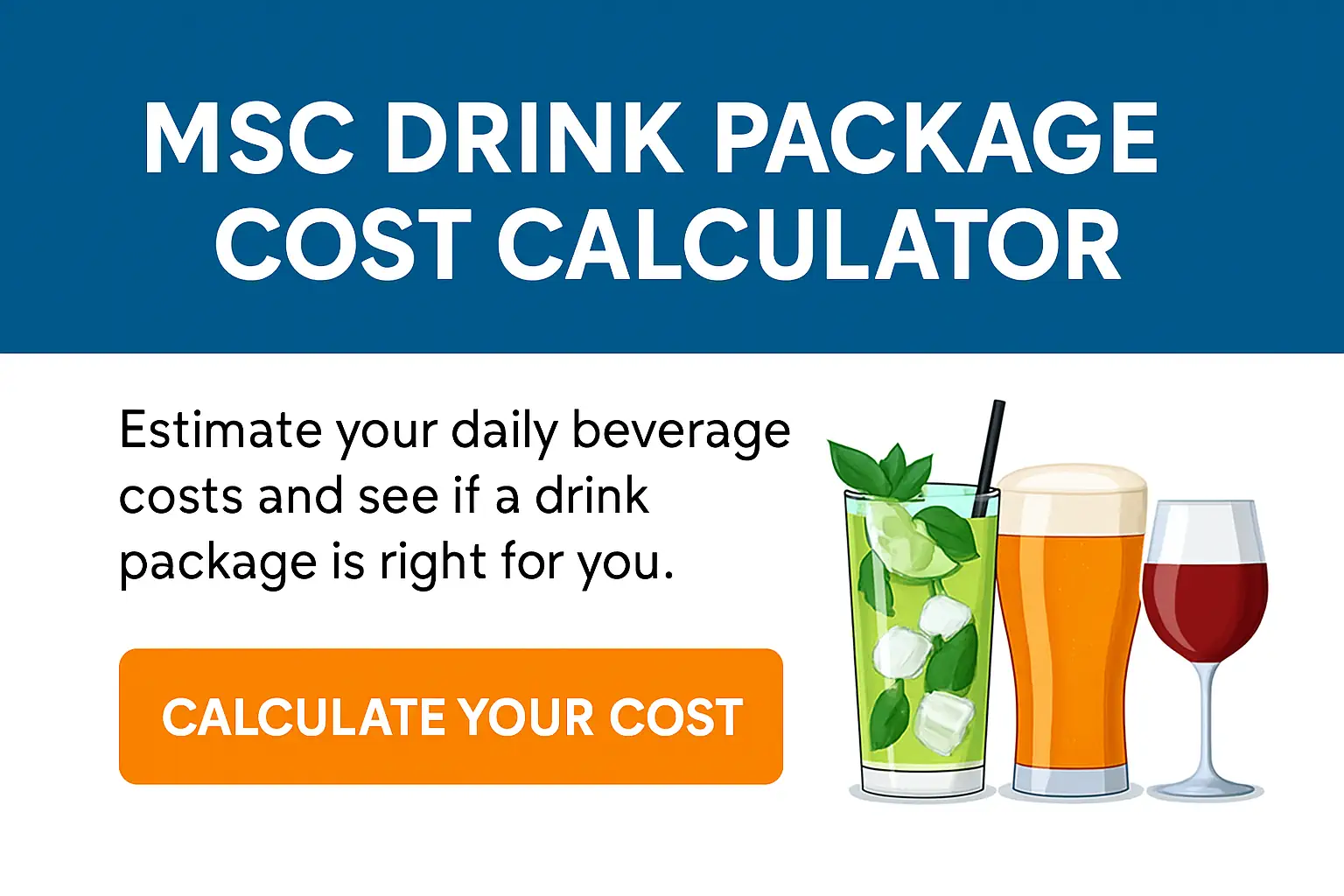 The calculator will estimate your average daily drink cost and compare it to the MSC drink package options.