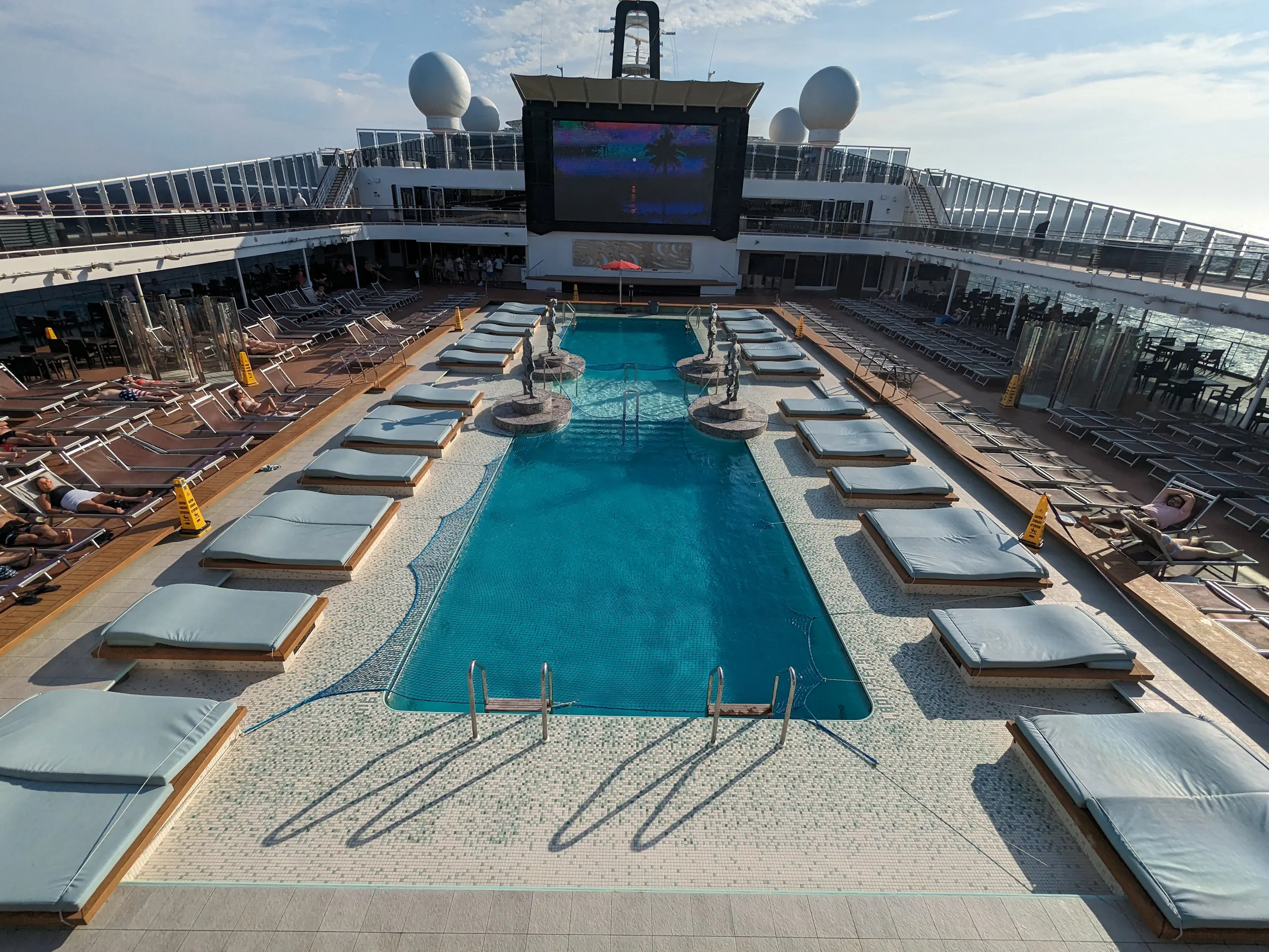 The signature element of this class is the Galleria, a two deck indoor promenade lined with shops, cafes, bars, and restaurants, all covered by a massive LED sky screen. This area serves as the center of the ship and creates a lively indoor hub that works well in any climate.