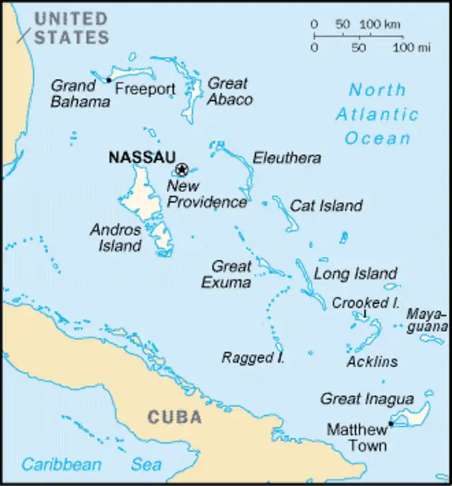 - Approximately 350 miles southeast of Nassau