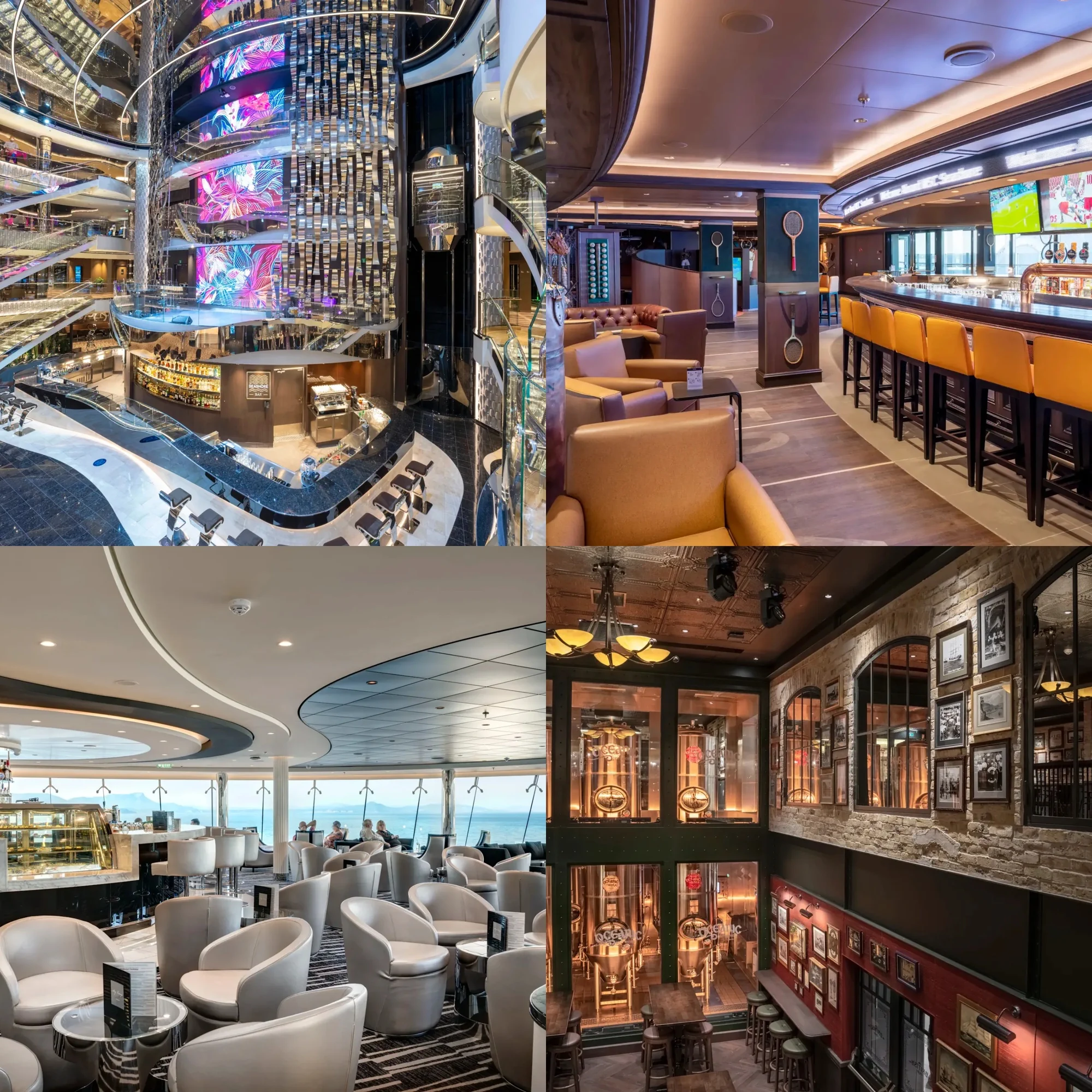 On embarkation day, or at the latest during your first full afternoon onboard, try two or three different bar types. Grab one drink at a central cocktail bar. Peek into the pub. Walk through the sports bar. Stop by a quieter upper-deck lounge.