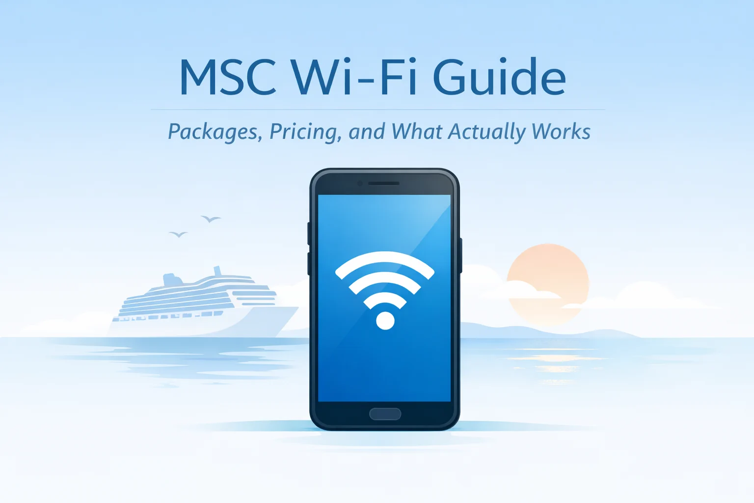 MSC Wi-Fi is one of those “sounds simple until you try to buy it” things. There are only two package tiers, but pricing varies by ship and sailing, device rules can surprise people, and “unlimited” still comes with some real-world caveats.