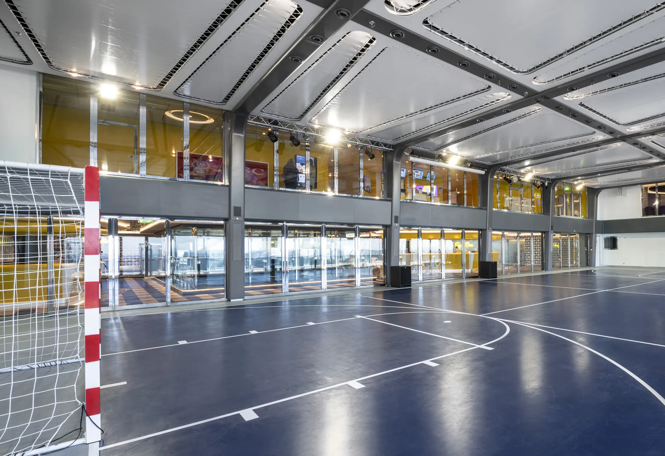 - The Sportplex (found on Meraviglia and World-class ships): A massive, climate-controlled indoor arena that rotates between soccer, basketball, volleyball, and even bumper cars or “Drone Academy.”
